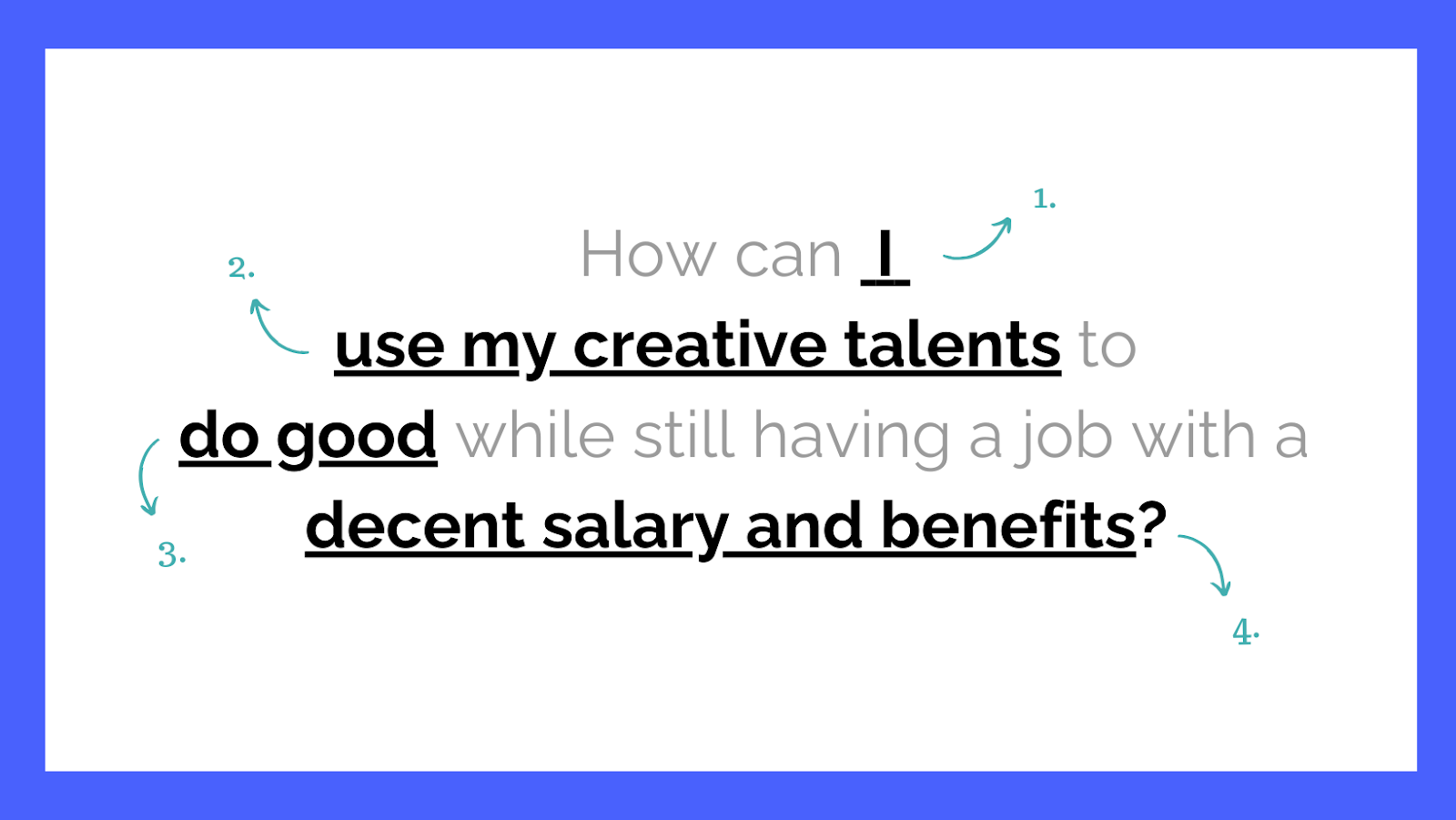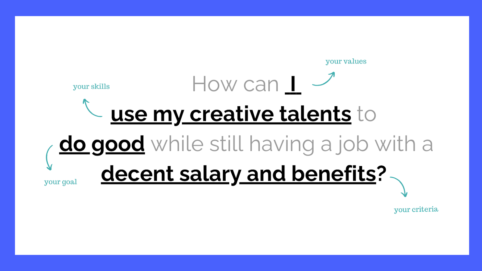 The first step is to clarify YOUR vision and what kind of work would inspire you. The rest will follow. Let’s break down how to do that into parts.